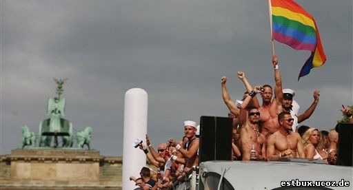 Более 550 тысяч гомосексуалистов, лесбиянок и транссексуалов прошли в субботу парадным маршем по улицам Берлина к Колонне Победы. Каждый год представители сексуальных меньшинств, одетые в причудливые костюмы, или, наоборот, практически обнаженные, протестуют против угнетения со стороны сексуального большинства. В этом году мероприятие собрало на 10% больше участников, чем в прошлом, сообщили организаторы. Событием не преминул воспользоваться Саша Барон Коэн для продвижения своего проекта "Бруно". Участники празднеств также помянули усопшего Майкла Джексона, написав на его портрете "Жаль".